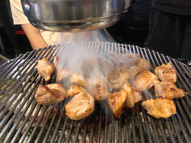 그리고 추가로 시킨 항정살 16,000원. 역시나 구워주셔서 편하게 먹을 수 있었고, 고소하고 기름진 것이 맛있다. 여기서 먹부림은 끝나지 않았고, 쫄면에 싸 먹어야 더 맛있다고 해서 추가로 쫄면도 시켰다.